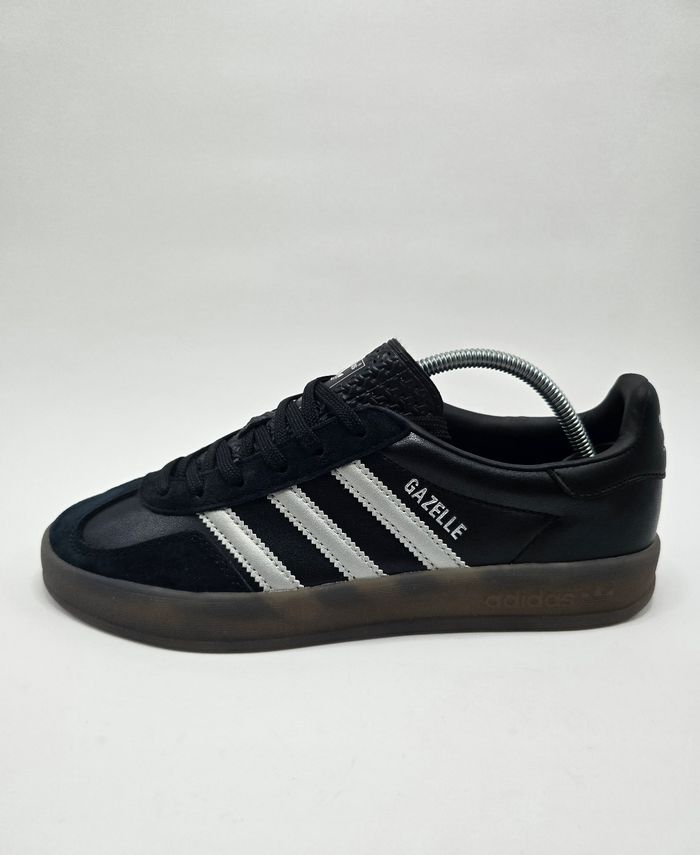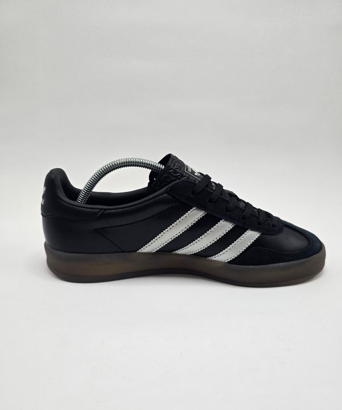 ​Adidas Gazelle Indoor - Noir & Semelle Gomme ​Vends cette superbe paire d'Adidas Gazelle Indoor en cuir noir avec les trois bandes gris métal iconiques et sa semelle en gomme translucide. Un classique indémodable qui va avec tout ! ​État : Neuf / jamais portées ​Pointure : 44 (FR) / 9.5 (UK) ​Couleur : Noir avec détails métallisé semelle marron fumé ​📦 Envoi rapide et soigné !