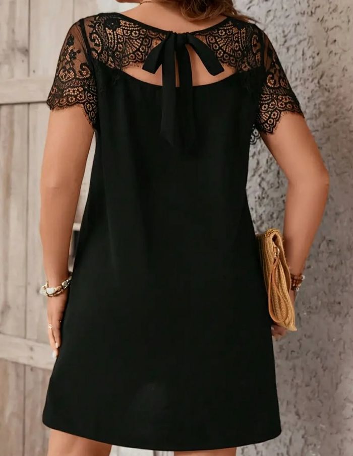 robe noire élégante, jamais portée. ✨ Taille : 50 👗 Coupe fluide, très confortable 👚 Haut en dentelle avec effet col en V (devant) 🎀 Détail dos avec ouverture et petit nœud 🖤 Manches courtes en dentelle Robe chic et féminine, parfaite pour une soirée, un événement ou une occasion spéciale. Convient aussi très bien pour un look élégant au quotidien. 📦 Envoi rapide et soigné