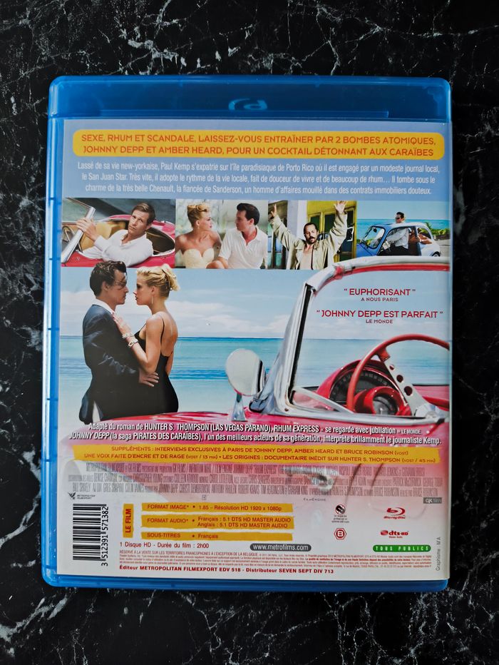 Film Rhum Express (2011 - The Rum Diary) en très bon état. Comédie, Drame et Aventure de Bruce Robinson avec Johnny Depp, Amber Heard, Aaron Eckhart, Giovanni Ribisi et Richard Jenkins. Plusieurs autres films (DVD et blu-ray) et séries télé disponibles sur mon dressing. Si vous avez des questions ou souhaitez plus de photos, n'hésitez pas à me demander. Prix négociable seulement si vous achetez plusieurs articles. N'hésitez pas à créer un lot et à faire une proposition raisonnable et à me demander un prix. Tag de recherche : #neboo_video #neboo_bluray #neboo_film blu ray bluray langue français française French FR