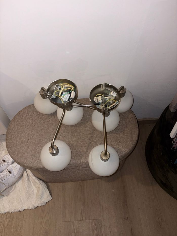 Lot 2 plafonniers IKEA 6 lampes – métal brossé & globes opalin – culot G9 vue - photo numéro 2