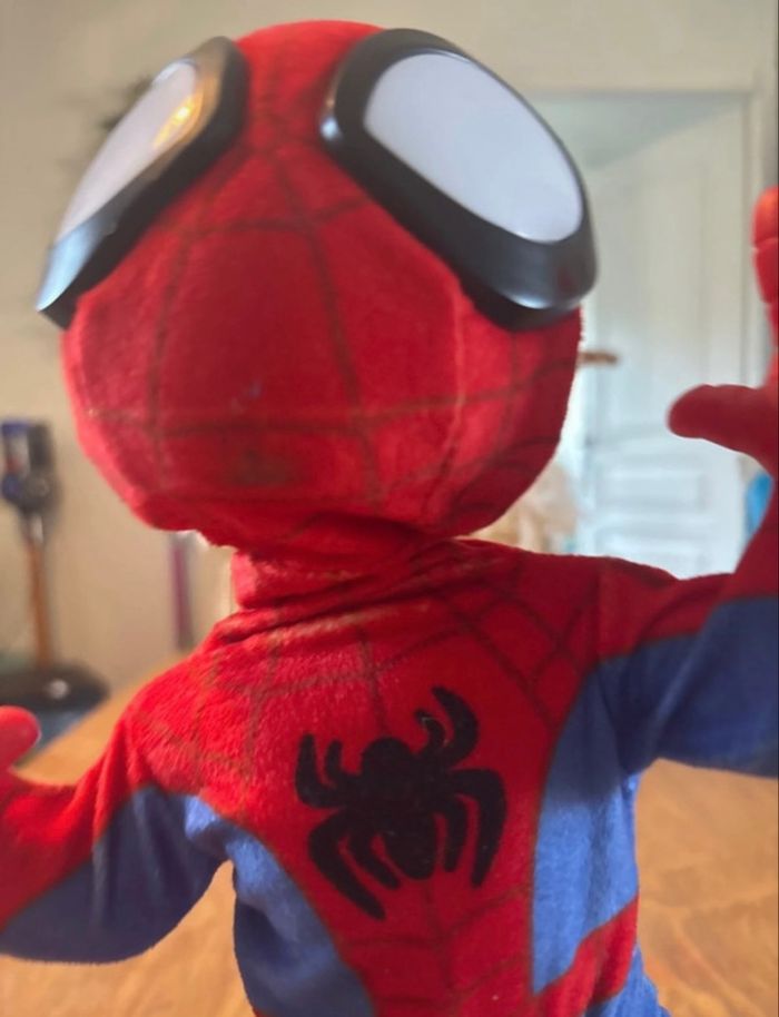 Peluche Spidey interactive danse et rampe en très bon état Juste petite trace sous le menton voir dernière photo