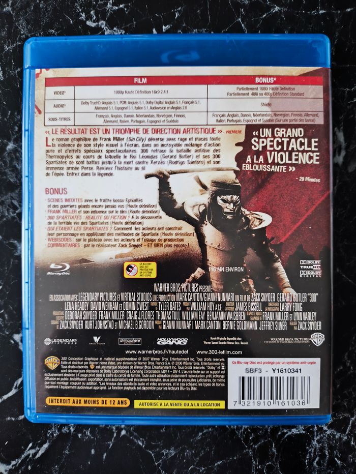 Film 300 (2007) en très bon état. Action, Guerre et Drame de Zack Snyder avec Gerard Butler, Lena Headey, Dominic West, David Wenham et Rodrigo Santoro. Plusieurs autres films (DVD et blu-ray) et séries télé disponibles sur mon dressing. Si vous avez des questions ou souhaitez plus de photos, n'hésitez pas à me demander. Prix négociable seulement si vous achetez plusieurs articles. N'hésitez pas à créer un lot et à faire une proposition raisonnable et à me demander un prix. Tag de recherche : #neboo_video #neboo_bluray #neboo_film blu ray bluray langue français française French FR