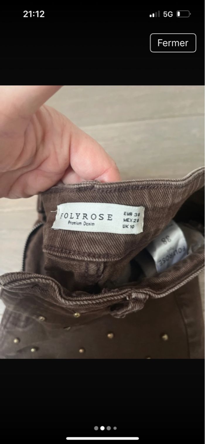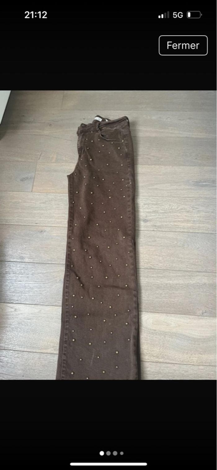 Jean marron Wide leg cloutée T38 Folyrose - photo numéro 4