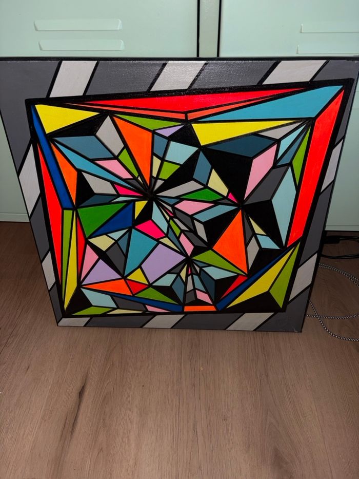 Grand tableau abstrait géométrique multicolore – effet vitrai