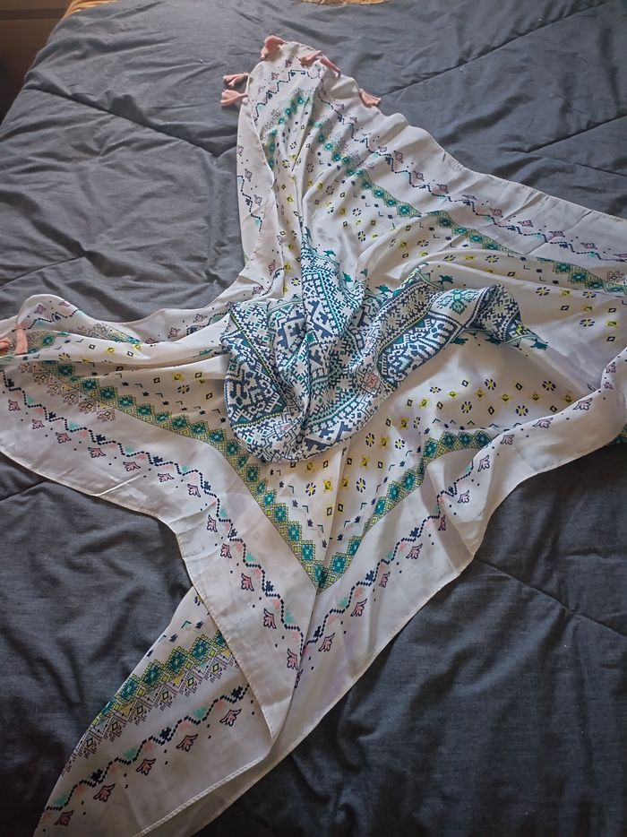 Grand foulard carré en soie et viscose Très bon état