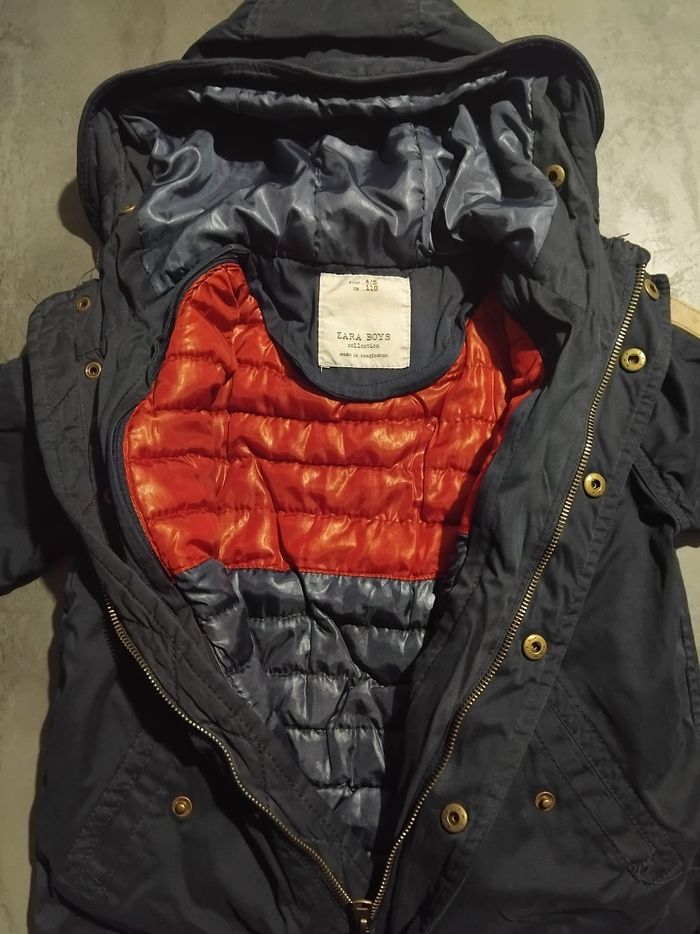 Veste de printemps noire pour garçon de 4/5 ans de la marque Zara. - Type de produit : Veste - Marque : Zara - Taille : 4 ans / 104 cm - Couleur : Noir - Caractéristiques : Capuche, Fermeture éclair, Poches. Veste deux en un, une doudoune sans manches s'enlève de l'intérieur,tenu pas une fermeture éclair. Voir photo.