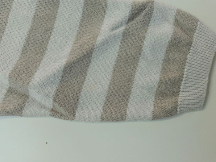 Pull en très bon état malgré la présence d'une tâche très peu visible à l'arrière d'une manche (voir dernière photo)