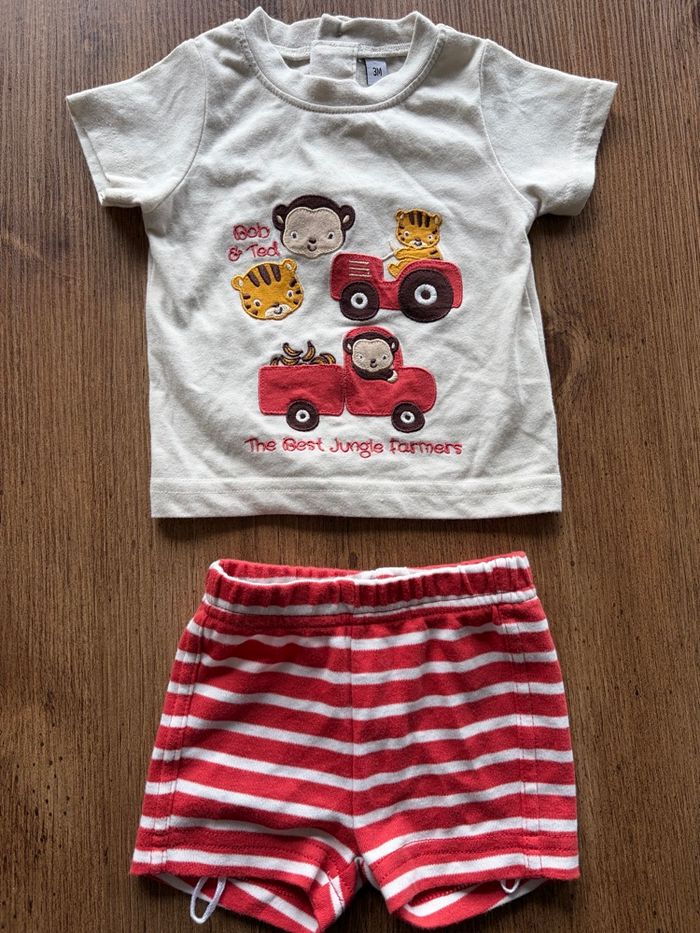 Ensemble T-Shirt et Short  avec motifs animaux 3 mois Blanc et rouge - photo numéro 1
