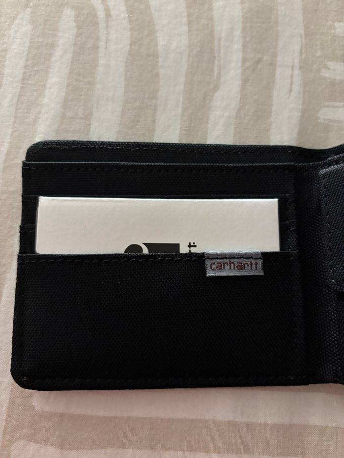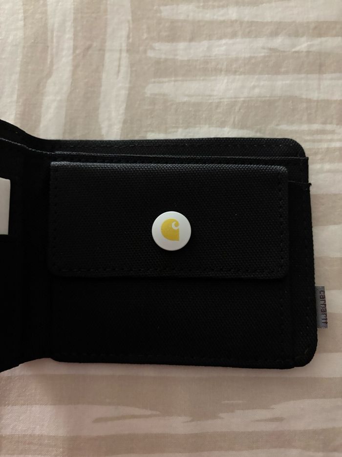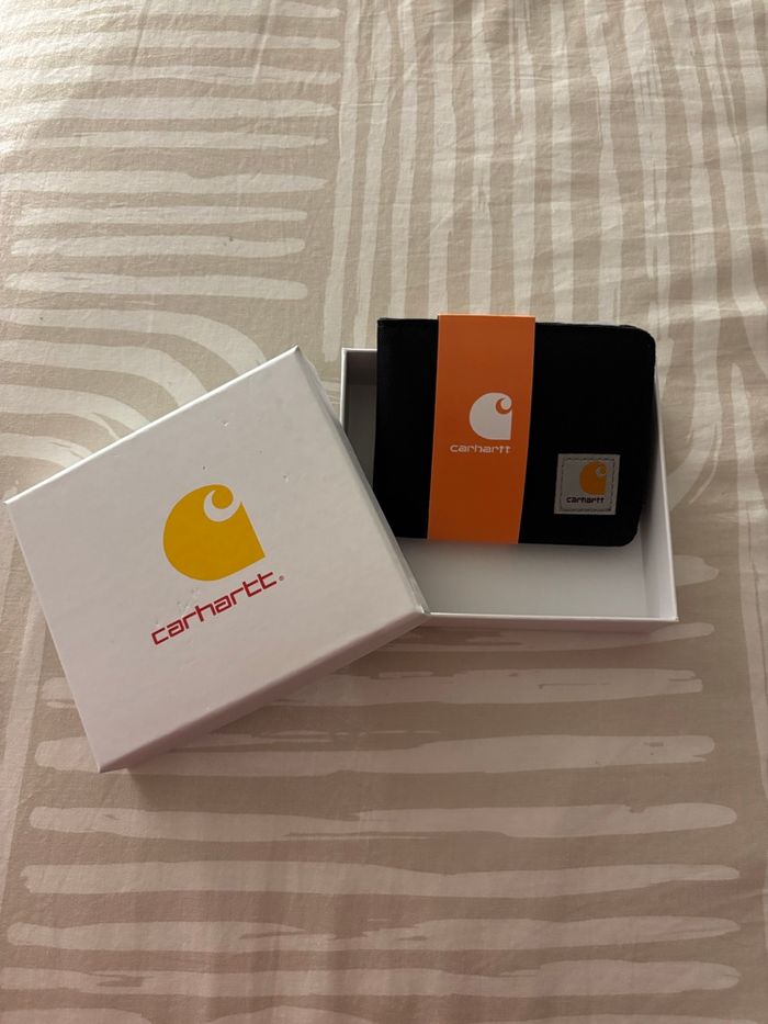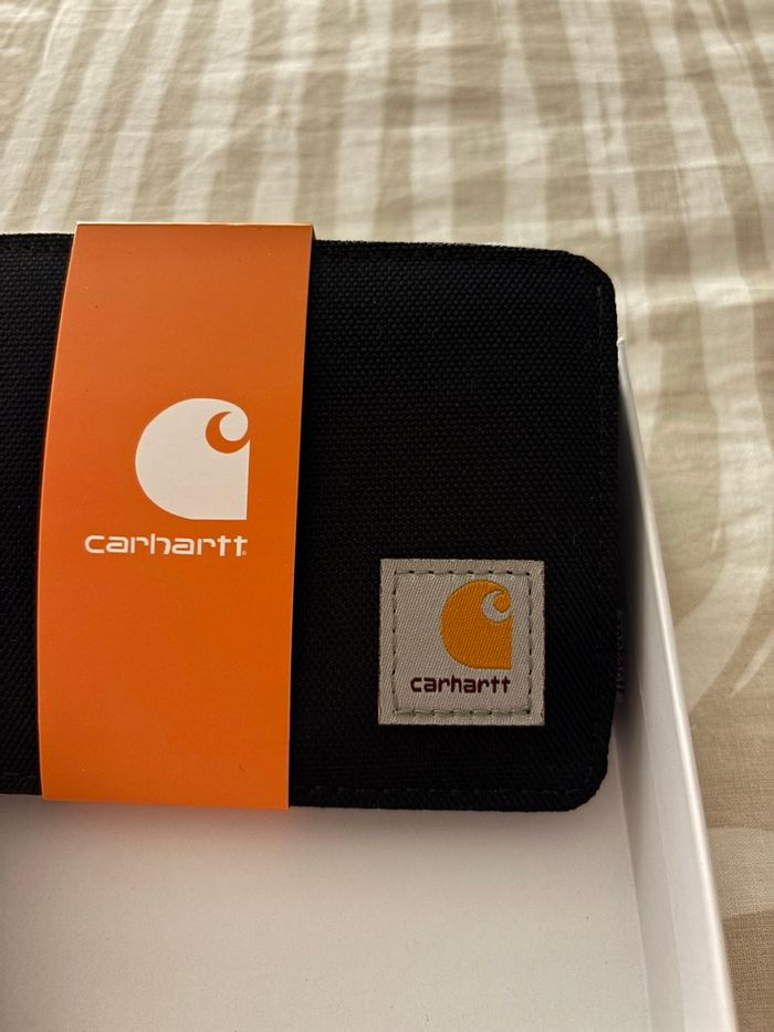 Porte-monnaie Carhartt original – noir 📌 État : Neuf ✨ Dimensions compactes : pratique à glisser dans une poche ou un sac. 🔎 Détails : • Plusieurs compartiments pour cartes, billets et pièces • Logo Carhartt cousu à l’avant • Matière résistante et durable, pensée pour un usage quotidien 👕 Style : sobre, casual, streetwear – parfait pour accompagner toutes vos tenues. ✅ Article 100 % authentique 📦 Envoi rapide et soigné