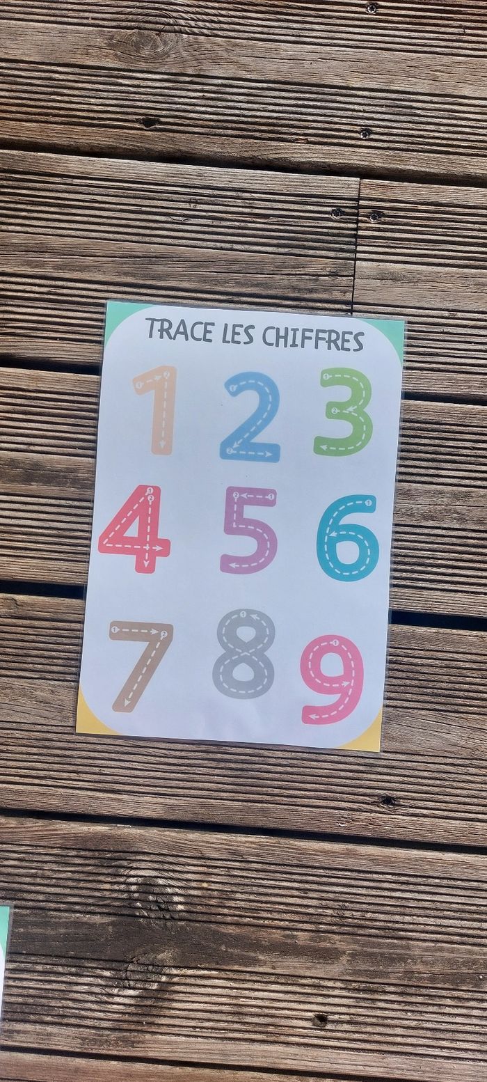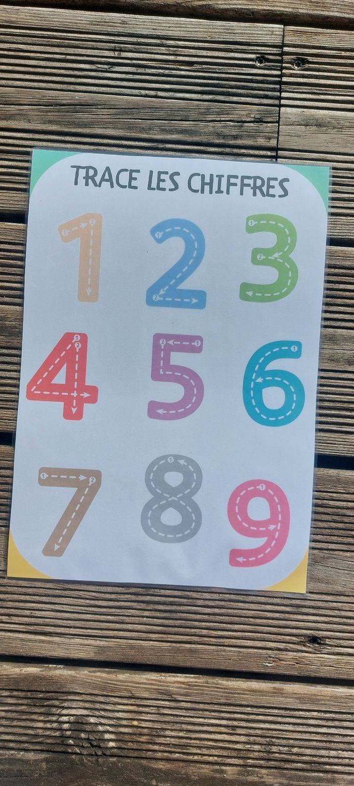 1 affiche format A4 imprimée et plastifiée Apprendre à écrire les chiffres en suivant le tracé #apprentissageludique #maternelle #chiffres #apprendreaecrire