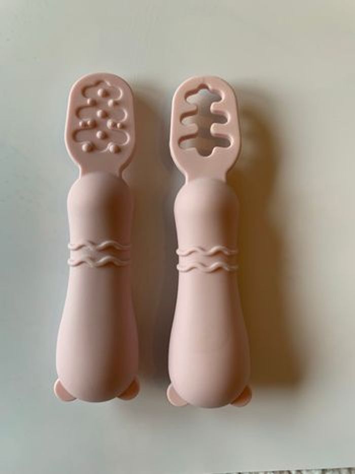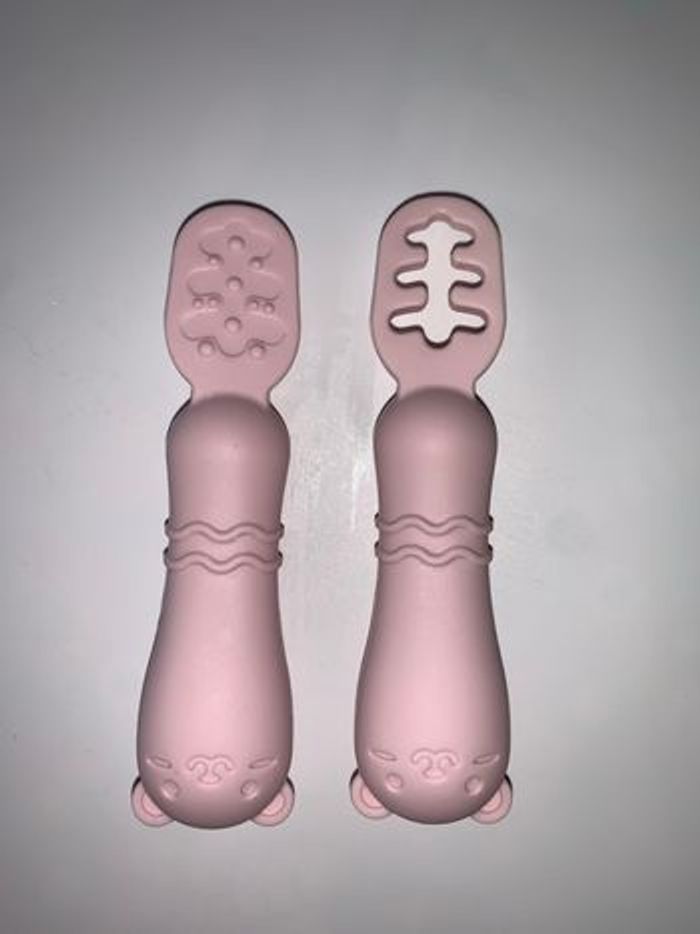 2 Cuillères en silicone rose pour bébés - photo numéro 1