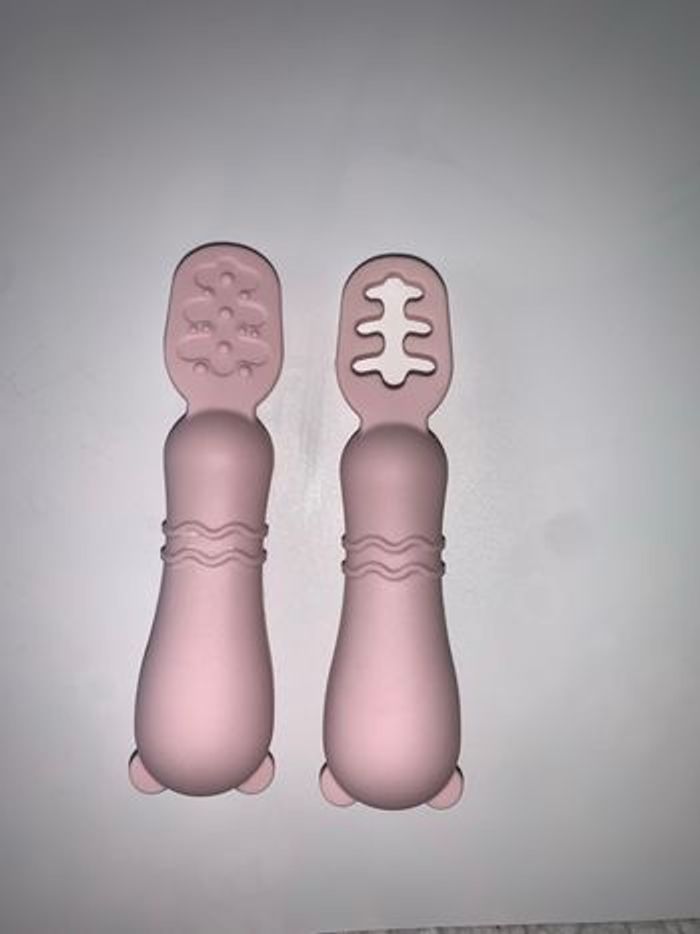 2 Cuillères en silicone rose pour bébés - photo numéro 4
