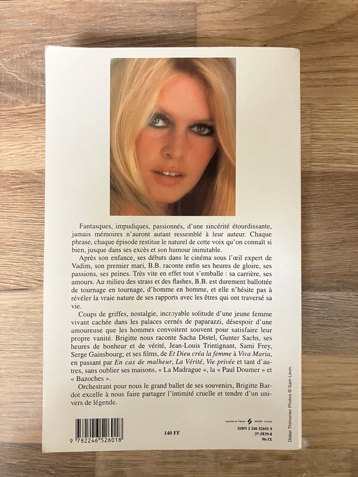 Livre relié en bon état : pas d’écriture, pas de déchirure, pas de page manquante ⚠️ la tranche supérieure comporte des taches (voir photo) Biographie de B.Bardot : textes +images Éditions Grasset 546 pages
