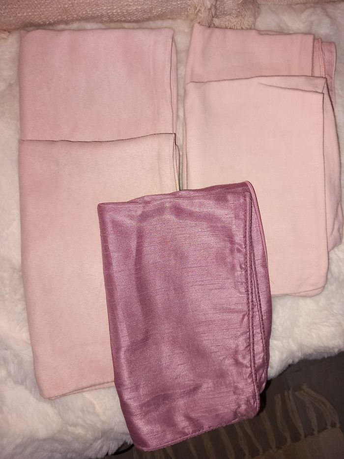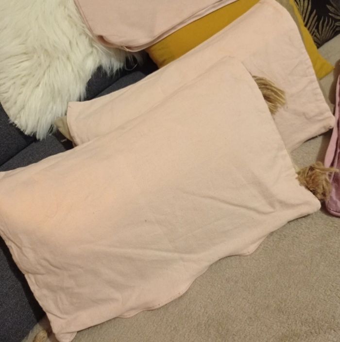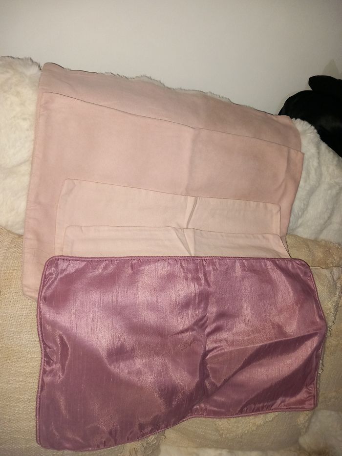 Très bon état 1 en satin 50x30 cm 2 en coton 43 x 31 cm 2 en velours 51 x 32 cm #houssecoussinrose