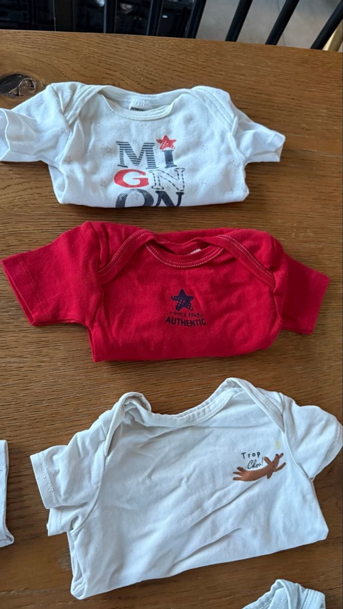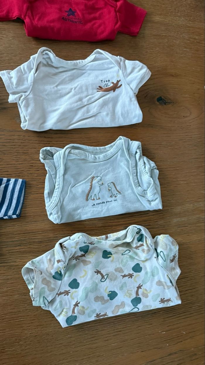 Lot de 9 bodies manches courtes Taille 6 mois 3 bodies Absorba 2 bodies Tex Baby 1 body KIABI qui s’attache devant 3 bodies Tape à l’œil
