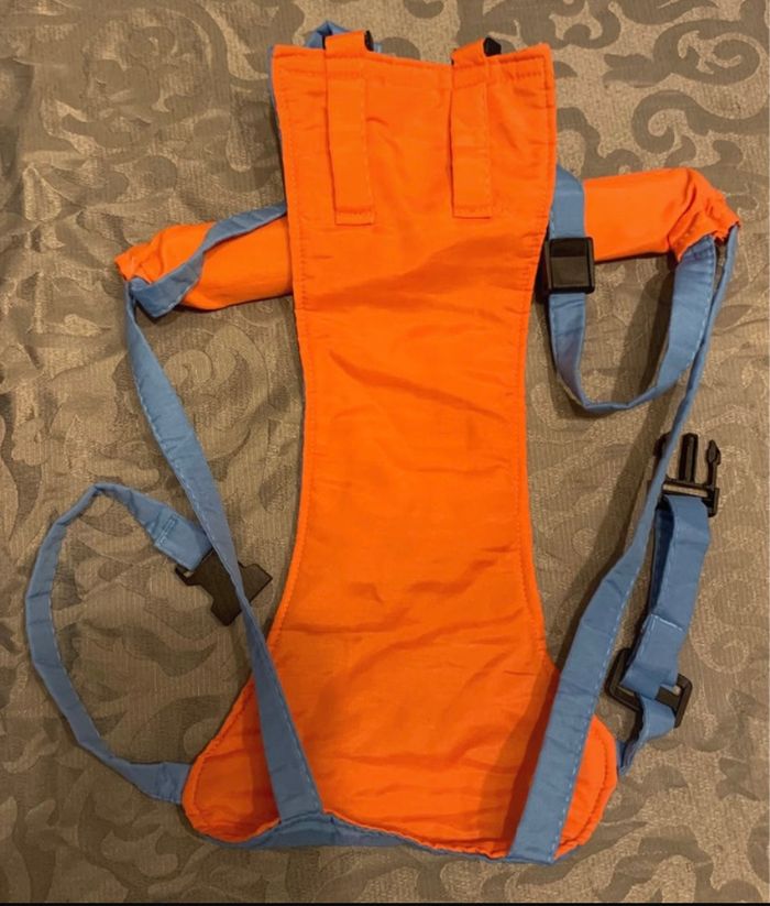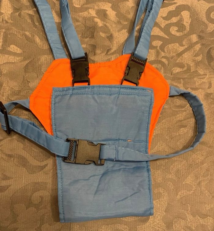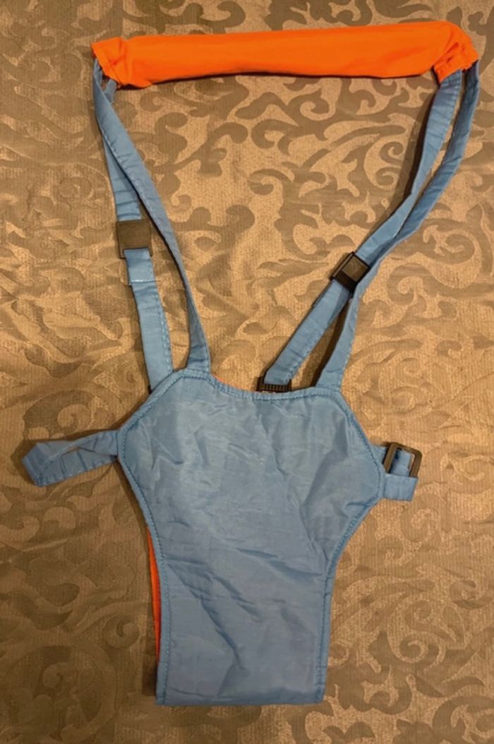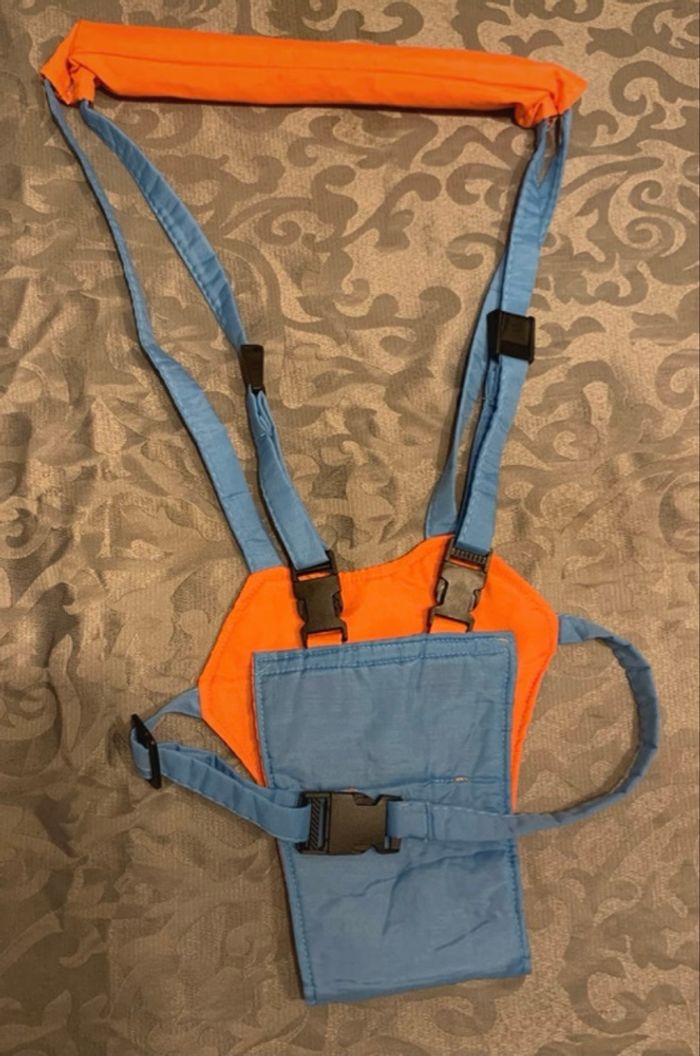 harnais conçu pour aider les bébés à apprendre à marcher tout en offrant un soutien aux parents, réduisant ainsi le besoin de se pencher. Le harnais est réglable pour s'adapter à la taille de l'enfant et au confort du parent.