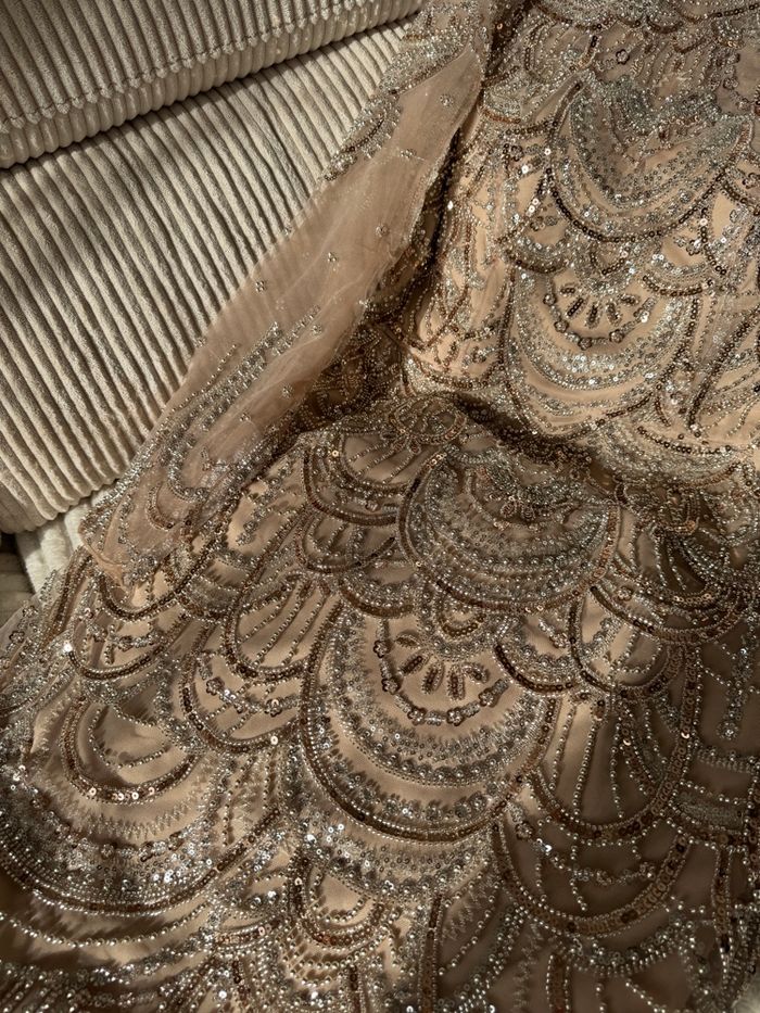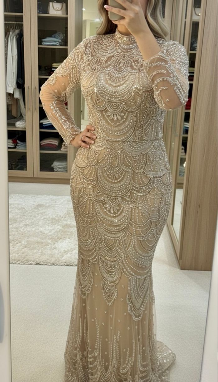 Modèle : Robe de soirée style "Sirène" (sublime la silhouette). • État : Neuve avec étiquette. Jamais portée, aucune modification ni retouche. • Taille : L / 40. • Style : Chic, glamour et sophistiqué, idéal pour mariages ou grandes réceptions