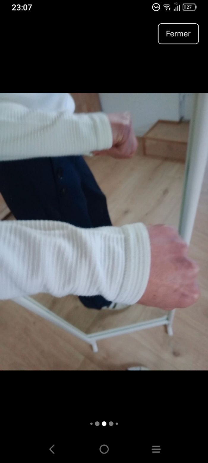 ​Joli haut à manches longues de couleur blanc crème / écru de la marque Histoire de femme.😍 Très confortable avec sa maille texturée à fines rayures horizontales. Intemporel et indémodable... Se marie avec de nombreuses couleurs..🌺 ​Marque : Histoire de femme ​Origine : Fabriqué en France 💞 ​Couleur : Blanc crème / Écru ​Col : Col montant (type cheminée) ​Matière : 100% Acrylique ​Détails : Texture en relief avec un effet de rayures horizontales discrètes Épaule 38 cm longueur 62 cm #calomomi_femme38 ​#hautfemme #colmontant #blanccreme #ecru #madeinfrance #histoiredefemme #modefemme #pullleger #chic #tendance