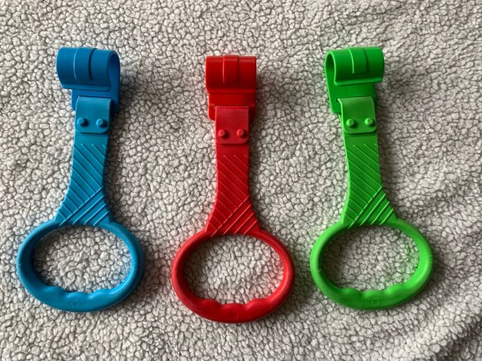 Fixez les crochets sur les barreaux du parc : bébé passe les doigts dans l'anneau large pour tirer et se hisser. Le silicone antidérapant évite les glissades, et les couleurs vives stimulent visuellement. Lot de 6 pour couvrir plusieurs côtés du parc. Aide motricité : Encourage à se tenir debout sans risque de chute. Sûr: Matériau souple, sans bords durs, facile à saisir. Pratique : Lavable, léger, réutilisable pour parc, lit ou lit parapluie. Ludique : Couleurs variées (vert, jaune, rouge, bleu) pour motiver bébé