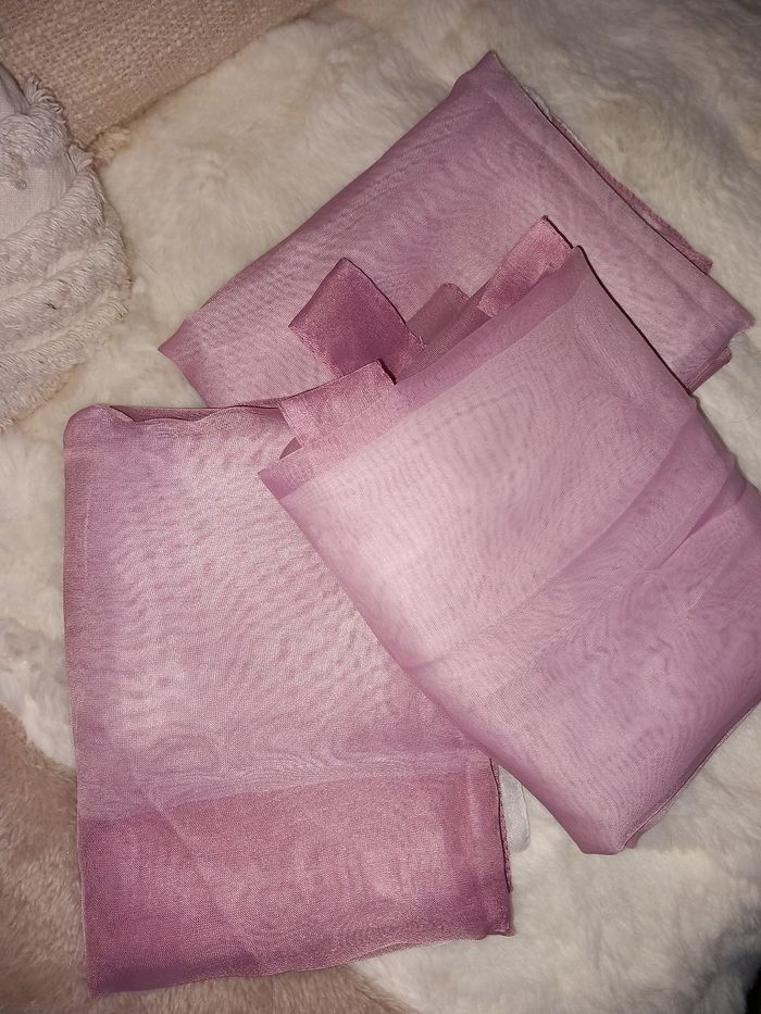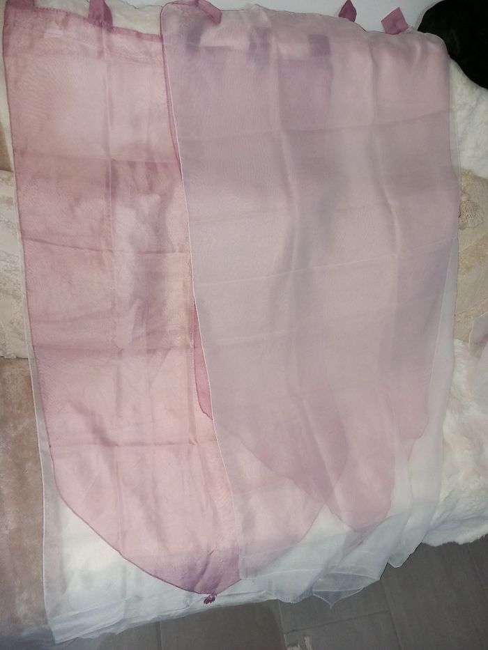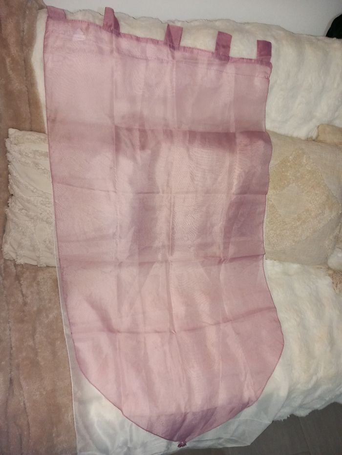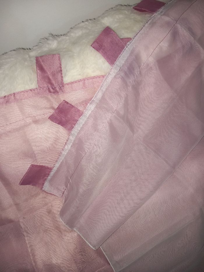 Lot de 3 voilages rose et blanc, état neuf. Largeur : 60 cm Longueur : 170 cm à partir des pattes #voilagesrose