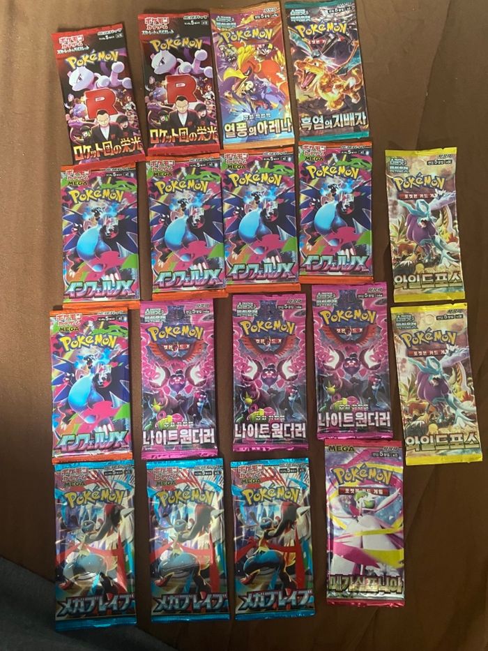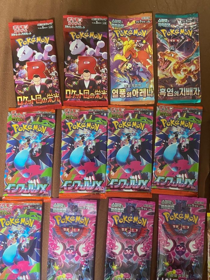 Total de 18 booster neuf et scellé ( mix japonais et coréen) 2 booster SV10 ( japonais) 5 booster inferno x ( japonais) 3 booster M1L ( japonais ) 3 booster SV6A ( coréen) 1 booster M1S ( coréen ) 2 booster SV5K ( coréen) 1 booster SV3 ( coréen) 1 booster SV9A ( coréen)