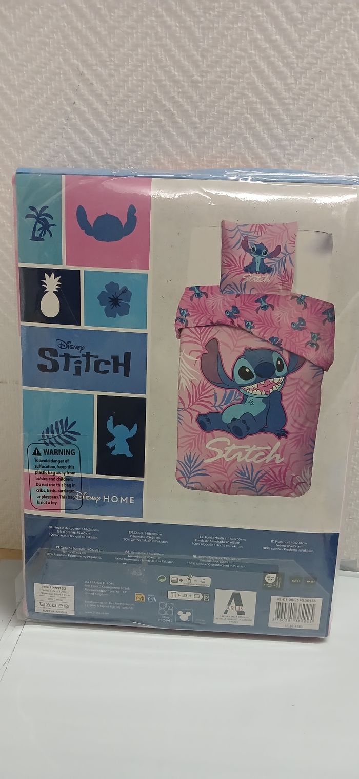 Hausse de couette Stitch 1 place 140x200cm oreiller 63x63cm 100%coton - photo numéro 1