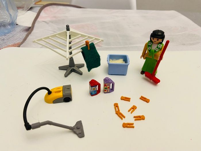 Femme de ménage playmobil Avec étendoir à linge Aspirateur Panière à linge Épingle à linge Lessive Pour maison playmobil