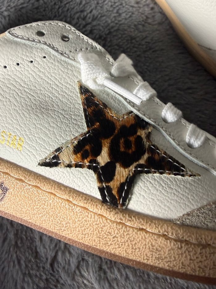 Paire de Golden Goose Ball Star en taille 38, neuves, jamais portées. Coloris blanc avec étoile motif léopard, empiècements beige/gris et semelle effet usé d’origine (design propre au modèle). Vendues avec boîte d’origine, housse et documents visibles sur les photos. État irréprochable. Modèle confortable et facile à porter au quotidien. Photos réelles de la paire. Envoi rapide et soigné ou remise en main propre possible.