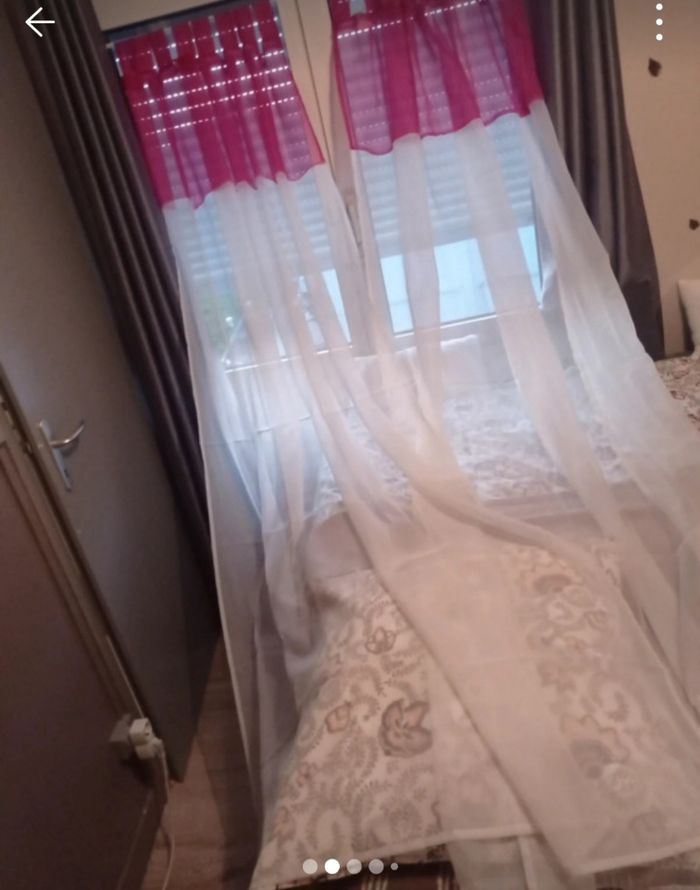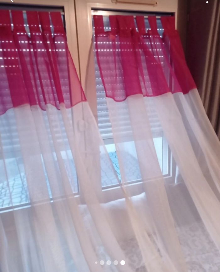 Une paire de voilage blanc / fushia état neuf. Largeur : 140 cm Hauteur : 240 cm #voilageblancfushia140×240