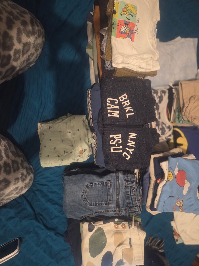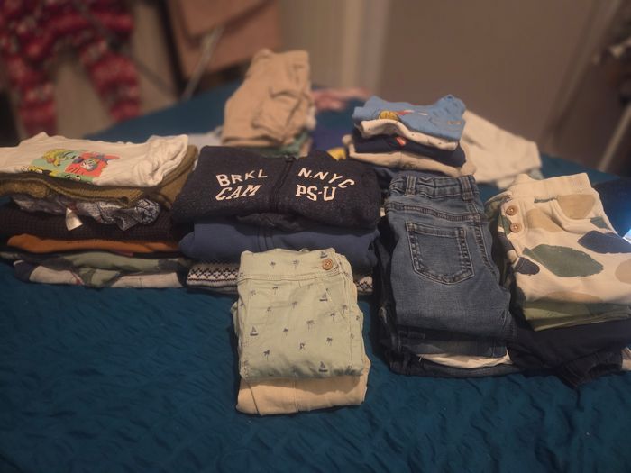 Lot 18 mois Pyjamas .short .combinaison .salopette. tee-shirt .pull .veste .jean .goggings Une tache sur un pull voir photo 4