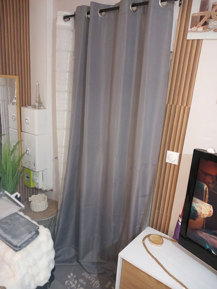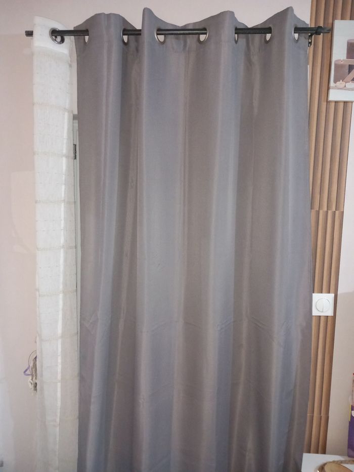 1 double rideau gris. Largeur : 140 cm Hauteur : 240 cm #doublerideauoeillet