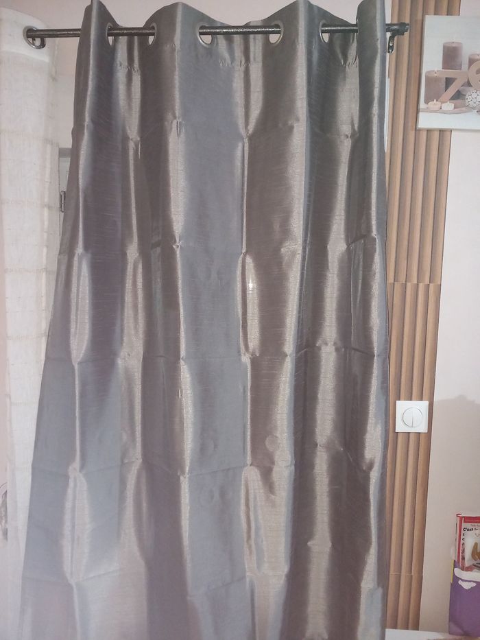 1 paire de double rideau gris argenté ( voir photo) En très bon état. Largeur : 140 cm Hauteur : 240 cm #doublerideauxgrisargenté