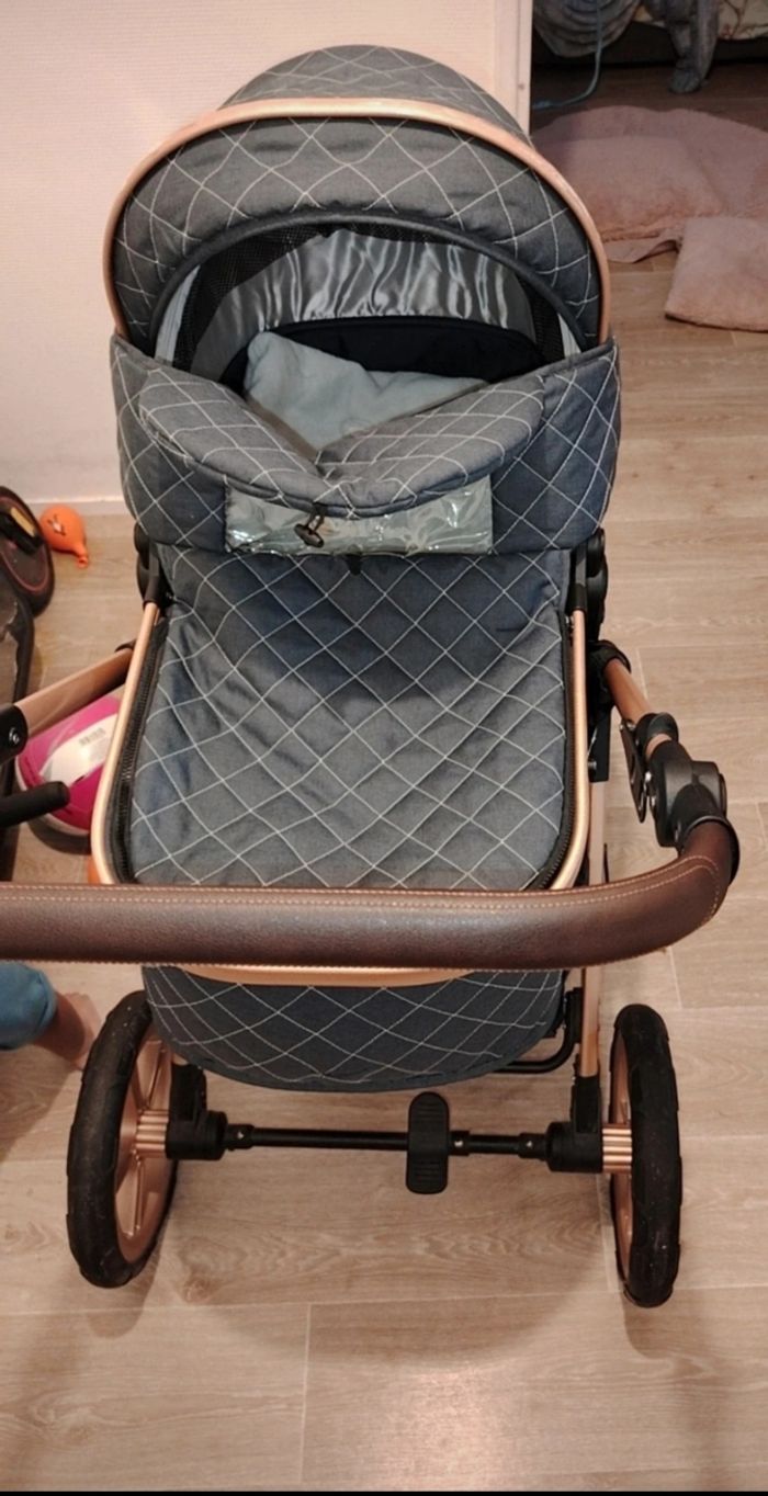 Je vend une poussette qui fait landeau et cosy servie très peux de fois.