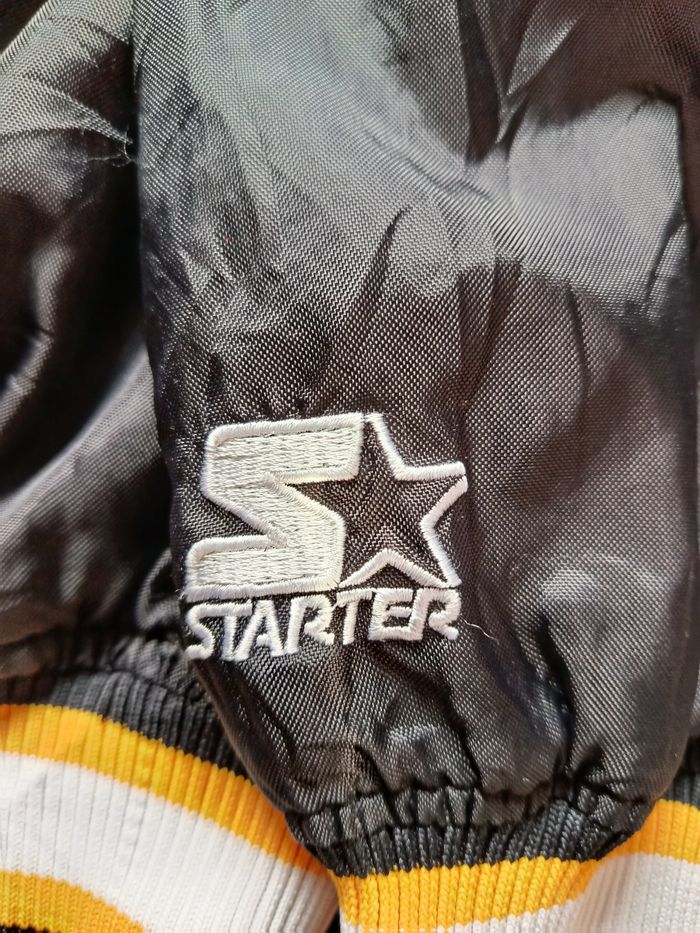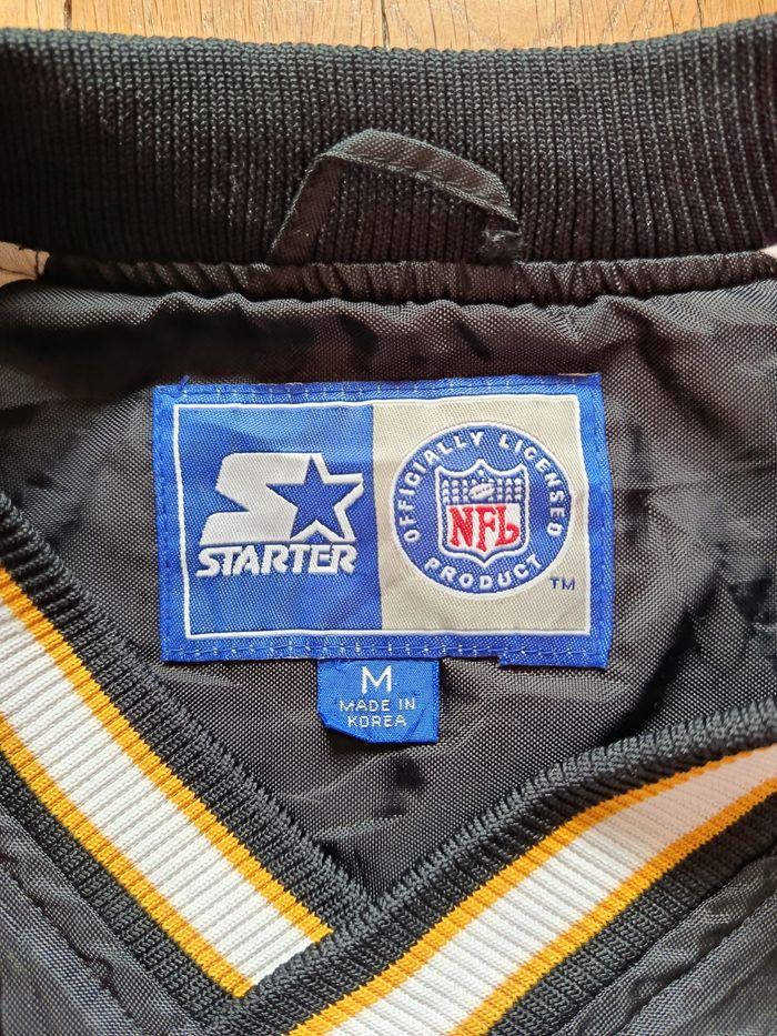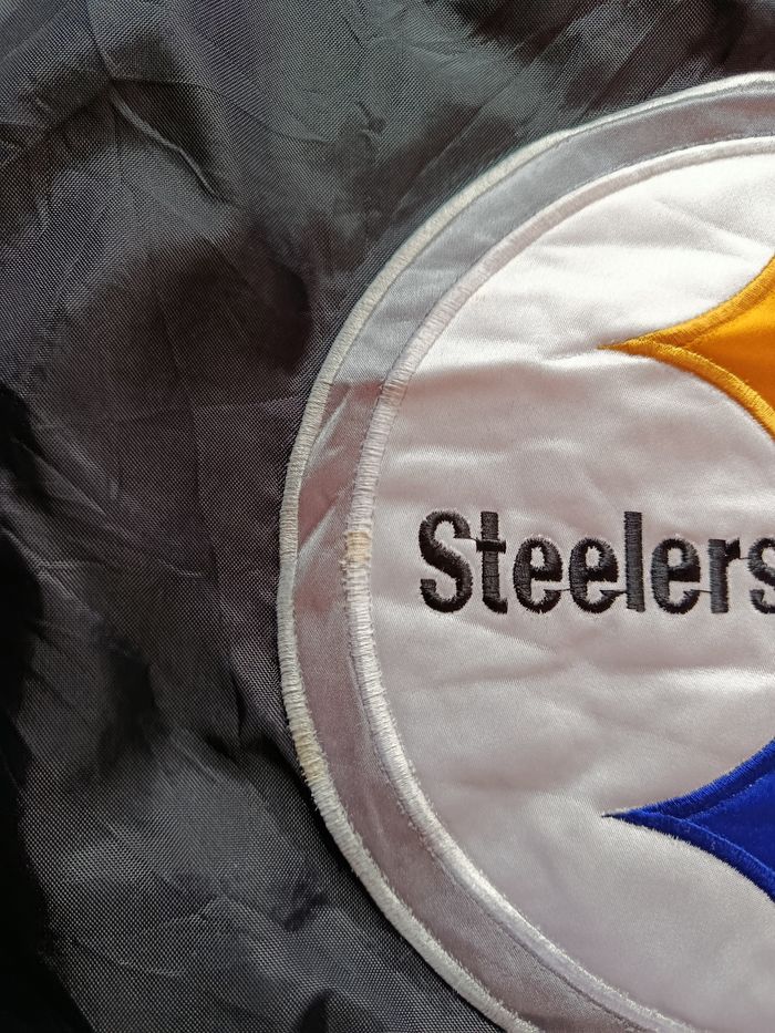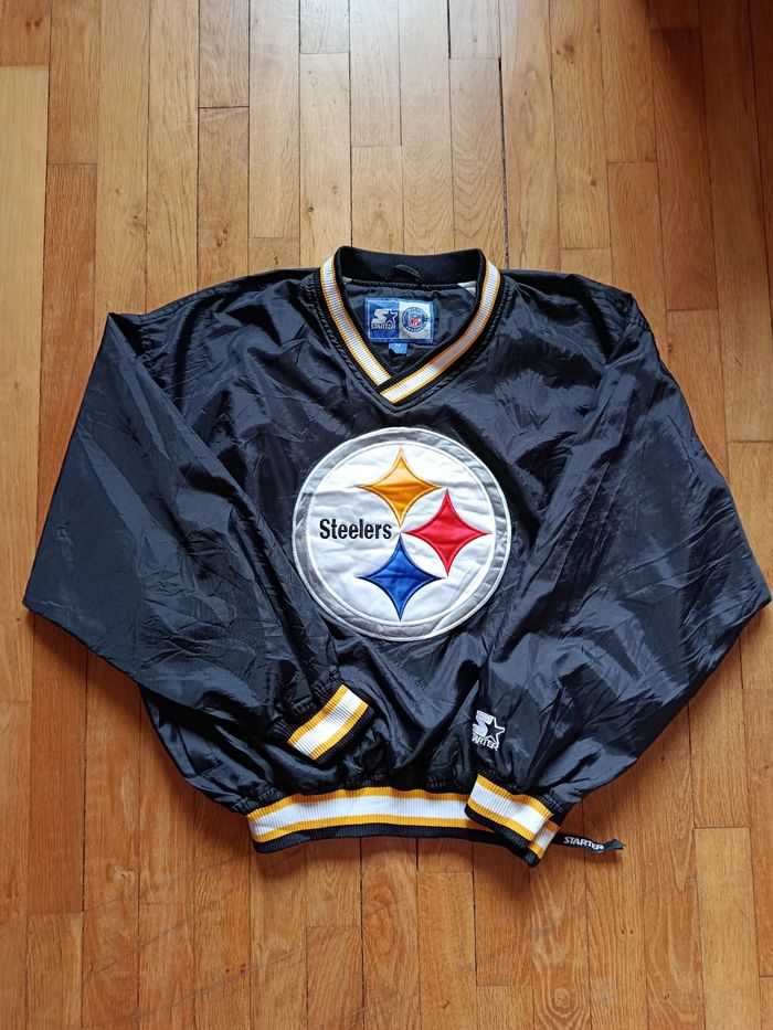 Je vends cette "veste" doublée des Steelers en très bon état général pour une pièce vintage. Taille M. Made in Korea Il n y a pas de trous ,elle est propre, lavée ,pas de bouloches sur les bords cotes et le col. Les seuls défauts sont sur la dernière photo,deux très légères tâches sur le bord extérieur du logo brodé en face du " S" de Steelers. Je m en sépare à contre coeur car il ne me va pas 🥴.( Erreur de taille)
