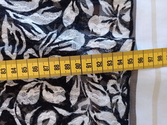 Robe à Fleurs Noir et Blanche Marque : Christine Laure Taille : 2 / 42 / XL Hauteur : 95cm (Sous genou pour 1m65) Epaule : 45cm Doublure Noire Coupe évasée Col en V Manches courtes Tissu principal : 98% Polyester 2% Elasthanne Doublure : 100% Polyester Une question ? N'hésitez pas !
