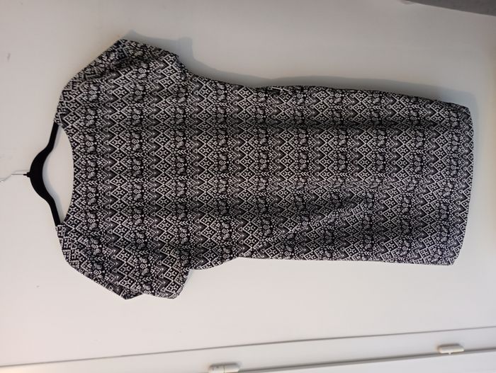 Robe à motifs noire et blanche Marque : Firefly Taille : L / 40 Hauteur : 98cm (Mi-Tibia pour 1m65) Epaule : 45cm Coupe Droite avec ceinture au niveau de la taille Col rond Manches courtes Matière : 100% Viscose Une question ? N'hésitez pas !