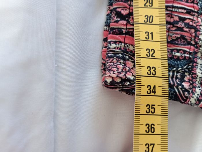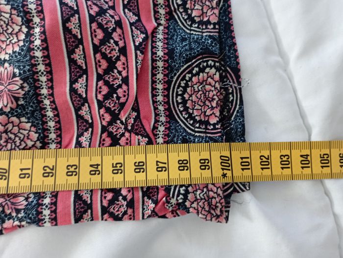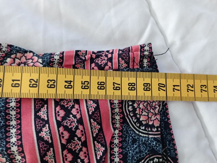 Pantalon fluide type Wax pour femme Taille Smoke élastiquée extensible Couleur principale : Rose Saumon Imprimé ethnique afro Taille : XL / XXL (40/42) Coupe : Régular large Matière : 100% Coton Poches sur les côtés Ceinture taille élastiquée Faux cordon rosette à la taille Léger et fluide Jamais porté A - Mesure ceinture taille : 34 cm B - Mesure hauteur : 100 cm C - Mesure longueur jambe : 70 cm D - Mesure bas ourlet : 18 cm E - Mesure cuisse : 31 cm F - Mesure entrejambe : 38 cm Vous avez une question ? Besoin d'informations supplémentaires, N'hésitez pas ! Offre sérieuse acceptée