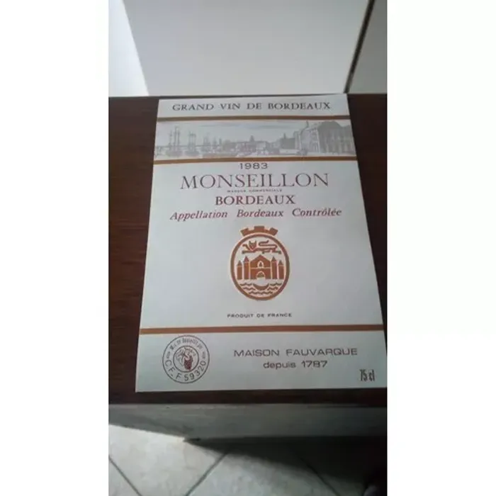 étiquette de Vin monseillon Bordeaux 1983 - neuve