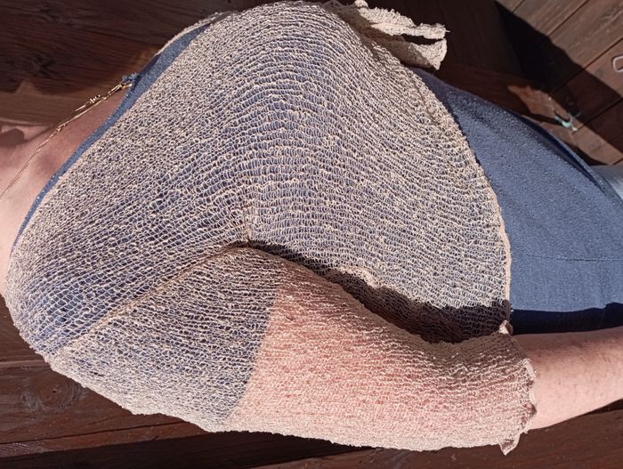 Gilet à crochet​, aussi appelé Filet de pêche, boléro ou cardigan Manche courte 3/4 Se porte noué à l'avant Super extensible Taille unique Matières : 70% Acrylique et 30% Polyamide Couleur : Beige Marque : Coton du Monde Mesures : A = Hauteur de buste = 59 à 67cm B = Tour de poitrine = 98 à 128cm C = Tour de taille = 96 à 126cm D = Tour de hanche = 132 à 162cm Très léger Lavage à la main uniquement Neuf avec étiquette Vous avez des questions ? N'hésitez pas !