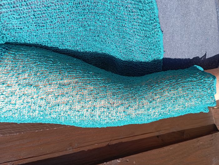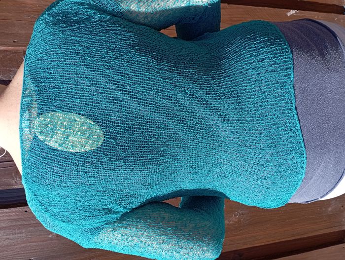 Gilet à crochet Boléro Cardigan style filet de pêche couleur Bleu canard - photo numéro 2