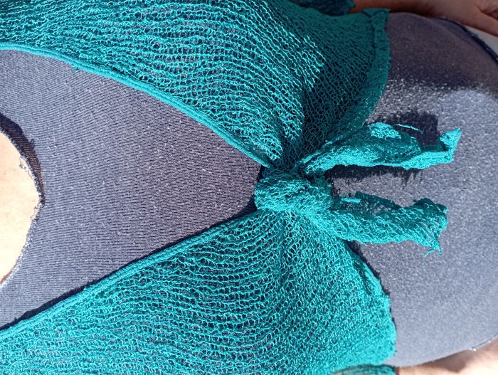 Gilet à crochet Boléro Cardigan style filet de pêche couleur Bleu canard - photo numéro 3