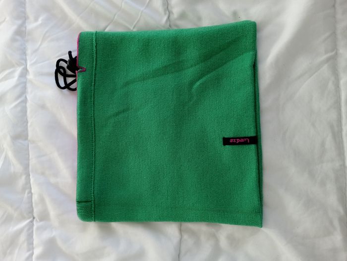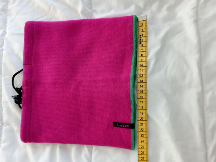 Cache cou de ski réversible pour adulte Couleur : Rose Fuchsia et Vert Mesure largeur : 25 cm Mesure hauteur : 24 cm Porté très peu de fois