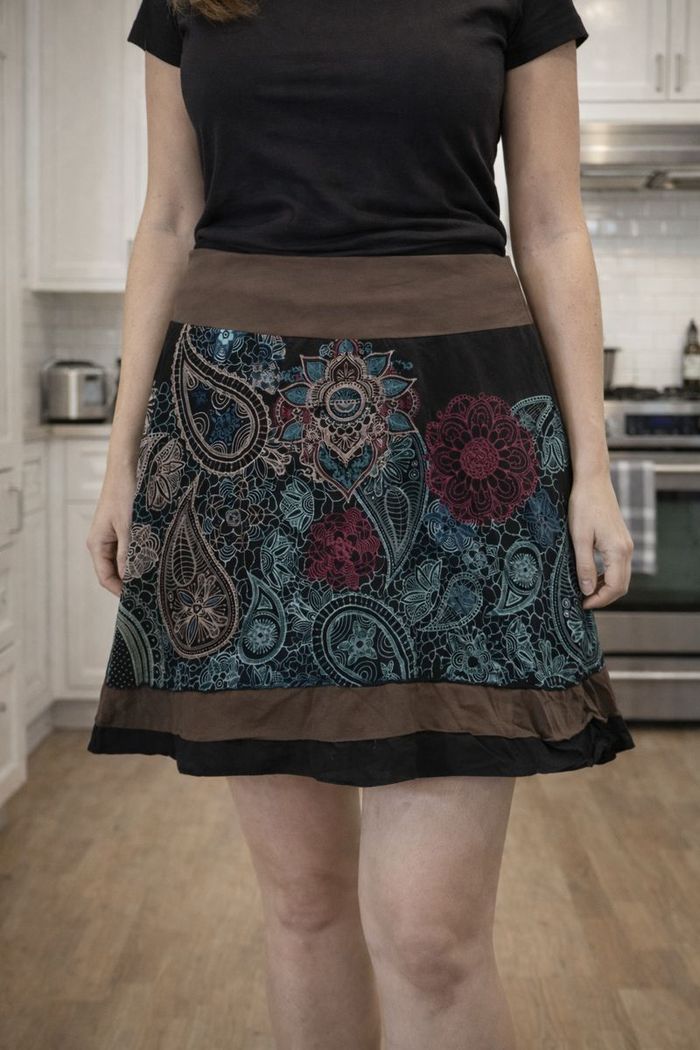 Jupe évasée style ethnique 100% coton Taille 44 Noir Taupe Coton du Monde (F010) - photo numéro 5