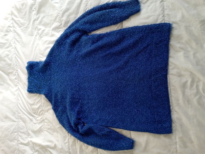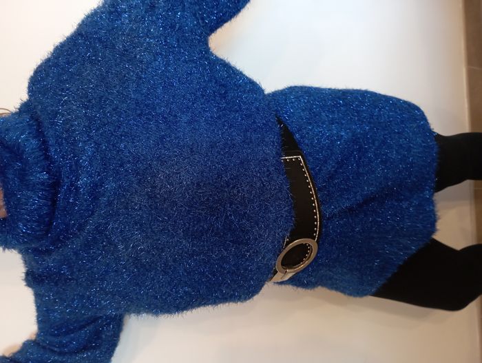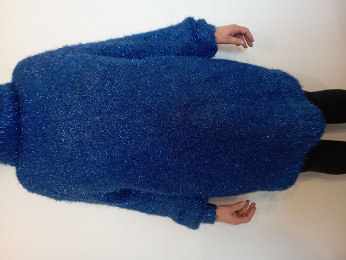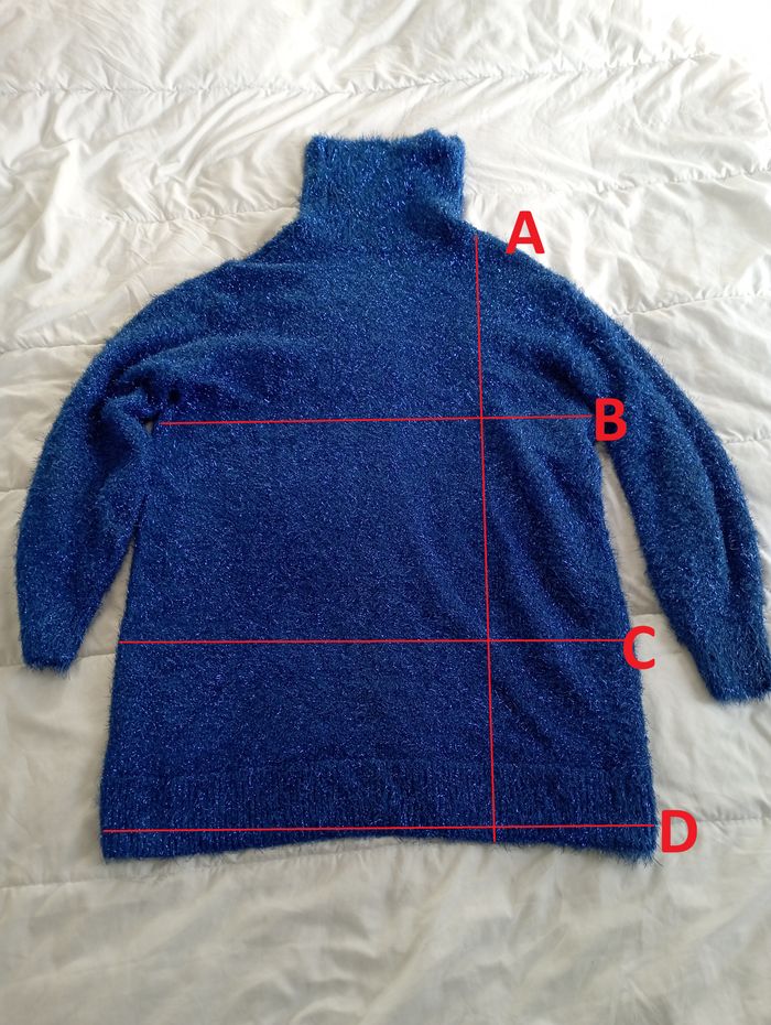 ⭐⭐Offre sérieuse acceptée⭐⭐ Robe Pull à paillettes large, ample et au col roulé Très chaude Couleur : Bleu roi Quelques usures (voir photos) Matière : polyester Taille : M Se porte généralement avec une ceinture (non fournie, disponible dans le dressing) Photo pour mesures Mesure A : 80cm Mesure B : 55cm Mesure C : 55cm Mesure D : 55 cm