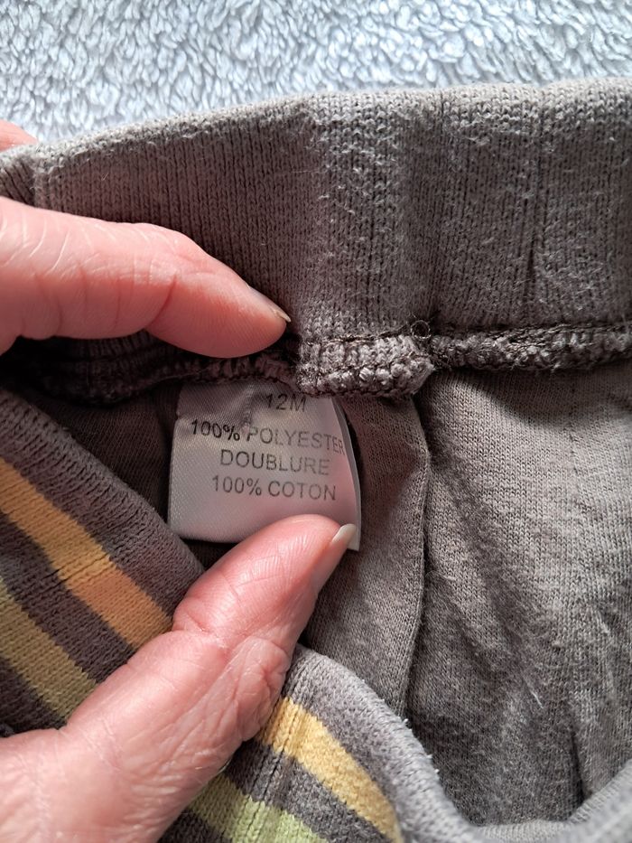 Composée de : 1 Tee-shirt manche longue 1 pantalon taille élastique 1 veste polaire sans manche 1 paires de chaussette gratuite Très bonne état Taille 12mois Marque Plus collection d'intermarché