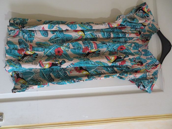 Belle petite blouse, col bateau à smocks, très agréable à porter, légère, petites manches volantées, taille XS, marque One.