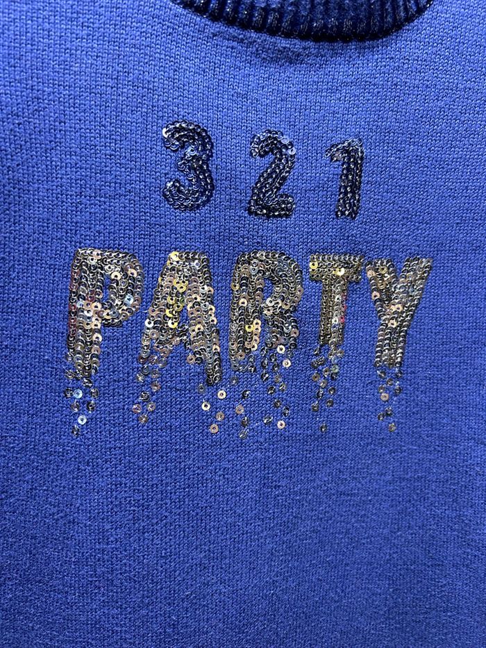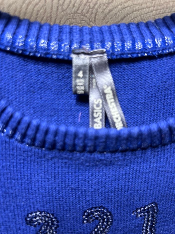 Jolie robe manches courtes bleu électrique et chiné argenté 100% coton Sequins argent devant Taille 4 ans 104 cm Orchestra