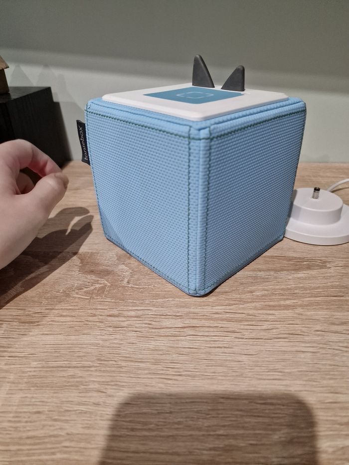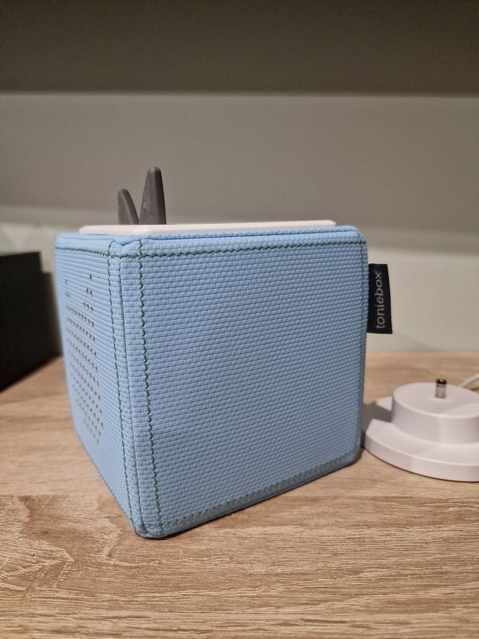 Tonies box v1 bleu + chargeur, en bon état. De légère points d'usure montré sur les photos. (Un coins marqué + trace dans coins de tissu vraiment superficiel) Envoie soigné et dans la journée si possible. Elle en parfait état de fonctionnement.