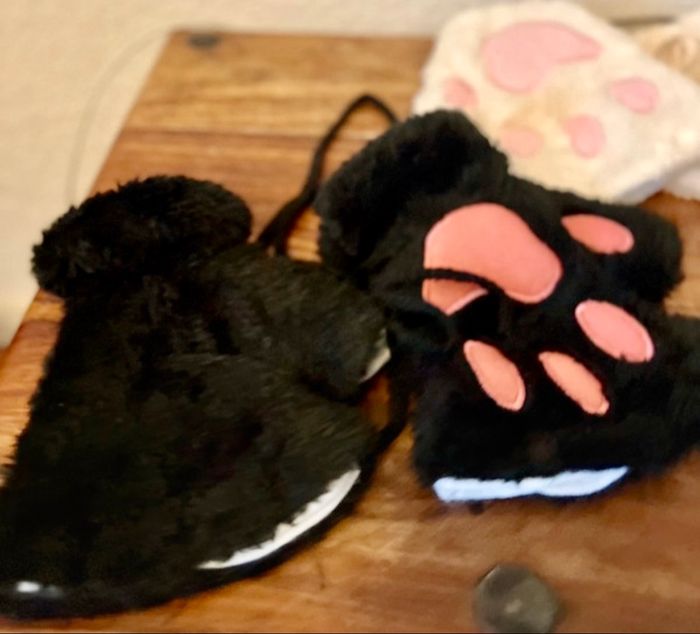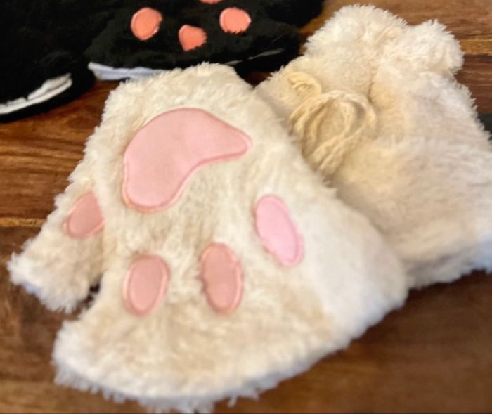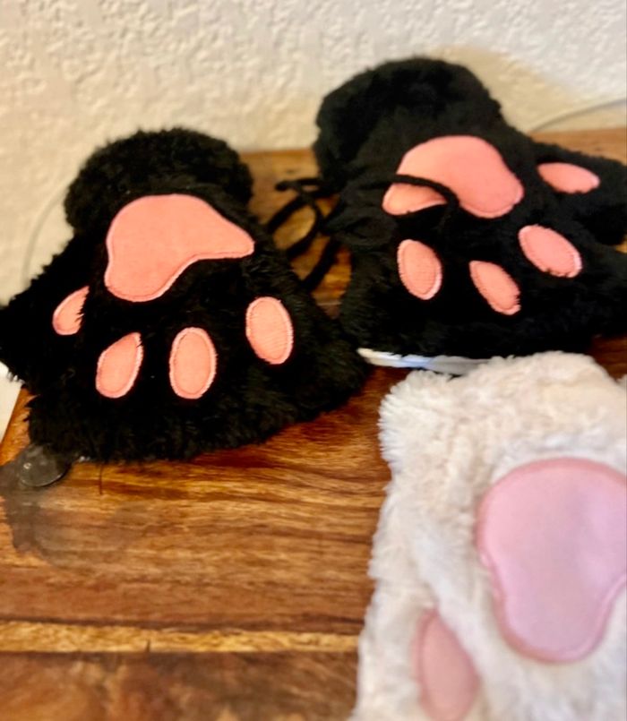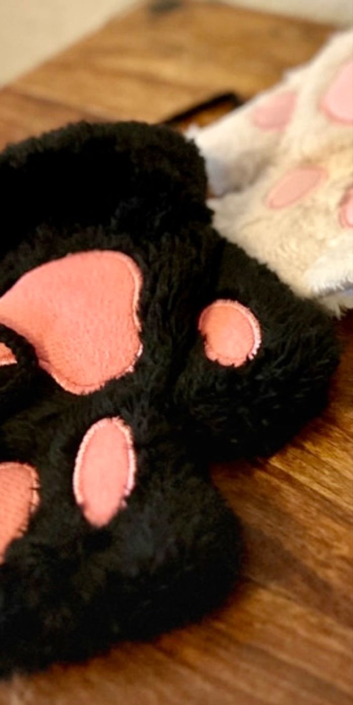 Gants mitaine patte 🐾 de chat🐱 neufs noir ou blanc taille unique