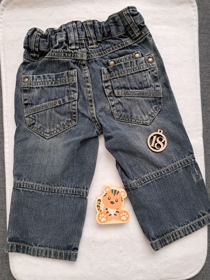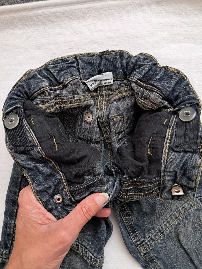 Jeans réglable à la taille. Taille 18mois 80cm Bonne état général mini points d'usure sur la doublure de la couture jambes droite mes pas troué. Marque pocopiano